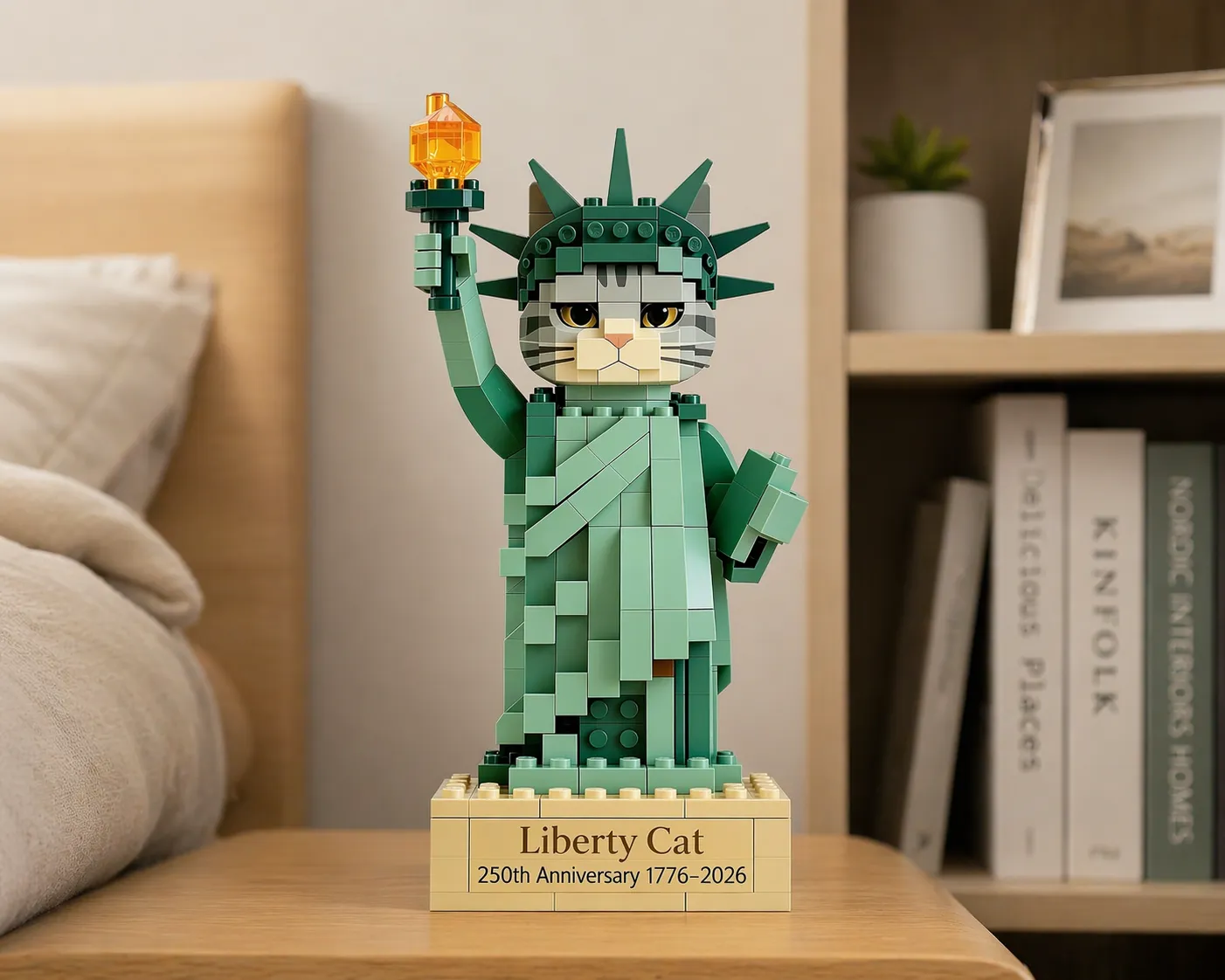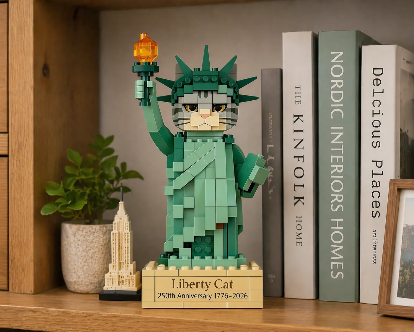 🐱 Character Expression — confident pose + crown details, giving “Liberty Cat” a bold personality through every brick